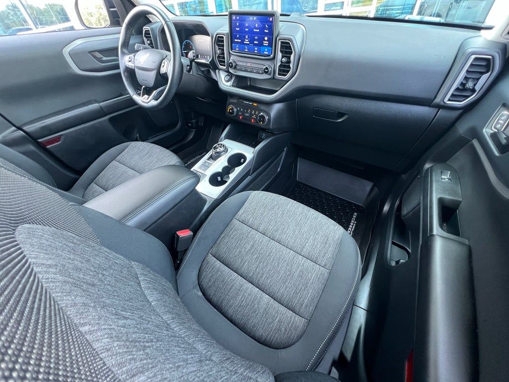 This unit offers Apple CarPlay for seamless connectivity. This unit has only one previous owner, verified by AutoCheck. Start this unit from inside with remote start. The Ford Bronco Sport has a clean AutoCheck report, ensuring its impeccable vehicle history. The state of the art park assist system will guide you easily into any spot. This mid-size suv offers Automatic Climate Control for personalized comfort. This vehicle warns of approaching vehicles with Cross-Traffic Alert. Bluetooth® technology is built into it, keeping your hands on the steering wheel and your focus on the road. Protect this Ford Bronco Sport from unwanted accidents with a cutting edge backup camera system. This 2022 Ford Bronco Sport comes equipped with Android Auto for seamless smartphone integration on the road. This unit has a 3 Cyl, 1.5L high output engine. This mid-size suv has four wheel drive capabilities. Maintaining a stable interior temperature in it is easy with the climate control system.